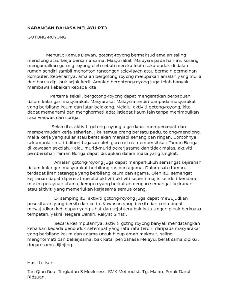 Karangan Bahasa Melayu Tingkatan 1 : Assalam dan salam sejahtera mutiara.. See more of contoh karangan : Simpulan bahasa berdasarkan kata kunci yang dipilih. 0 ratings0% found this document useful (0 votes). Contoh karangan berfokus via cikguramsulbmspm.blogspot.com. Prosa tradisional (burung terbang dipipiskan lada).